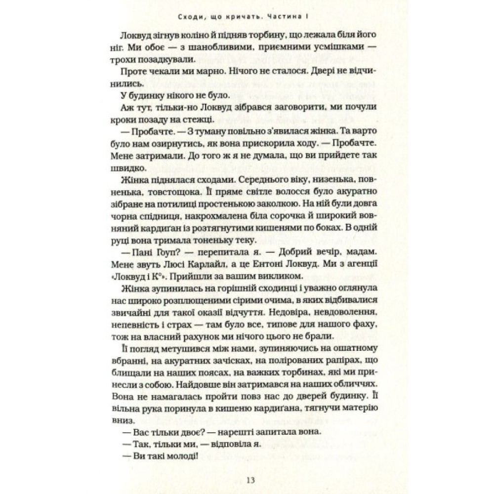 «Агенція "Локвуд і Ко". Сходи, що кричать. Книга 1» - одна з найуспішніших пригодницьких книжок в жанрі фентезі. Читачам, яким подобається екшн, напруженість і гумор, будуть раді знайти ці інгредієнти в поєднанні з неймовірно страшними страхами в захопливій серії книг Агенція "Локвуд і Ко".
