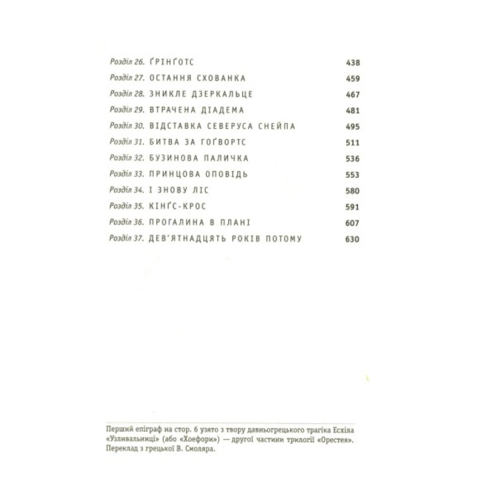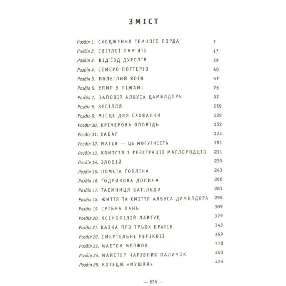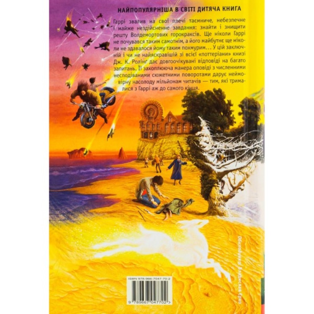 Гаррі звалив на свої плечі таємниче, небезпечне і майже нездійсненне завдання: знайти і знищити решту Волдемортових горокраксів. Ще ніколи Гаррі не почувався таким самотнім, а його майбутнє ще ніколи не здавалося йому таким похмурим... У цій заключній і чи не найяскравішій зі всієї «поттеріани» книзі Дж. К. Ролінґ дає довгоочікувані відповіді на багато запитань. Її захоплююча манера оповіді з численними несподіваними сюжетними поворотами дарує неймовірну насолоду мільйонам читачів — тим, які трималися з Гаррі аж до самого кінця.