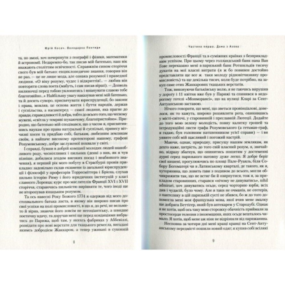 Володарка Понтиди – це унікальна в українській літературі пригодницька мандрівка лабіринтами королівських дворів, ложами таємних товариств, феєречними маскарадами, капканами підозрілих дешевих корчомок та в’язничних келій у передреволюційній Європі 1770-х років. Герой цього авантюрного і глибоко філософського роману – український козак-шляхтич Юрій Рославець.