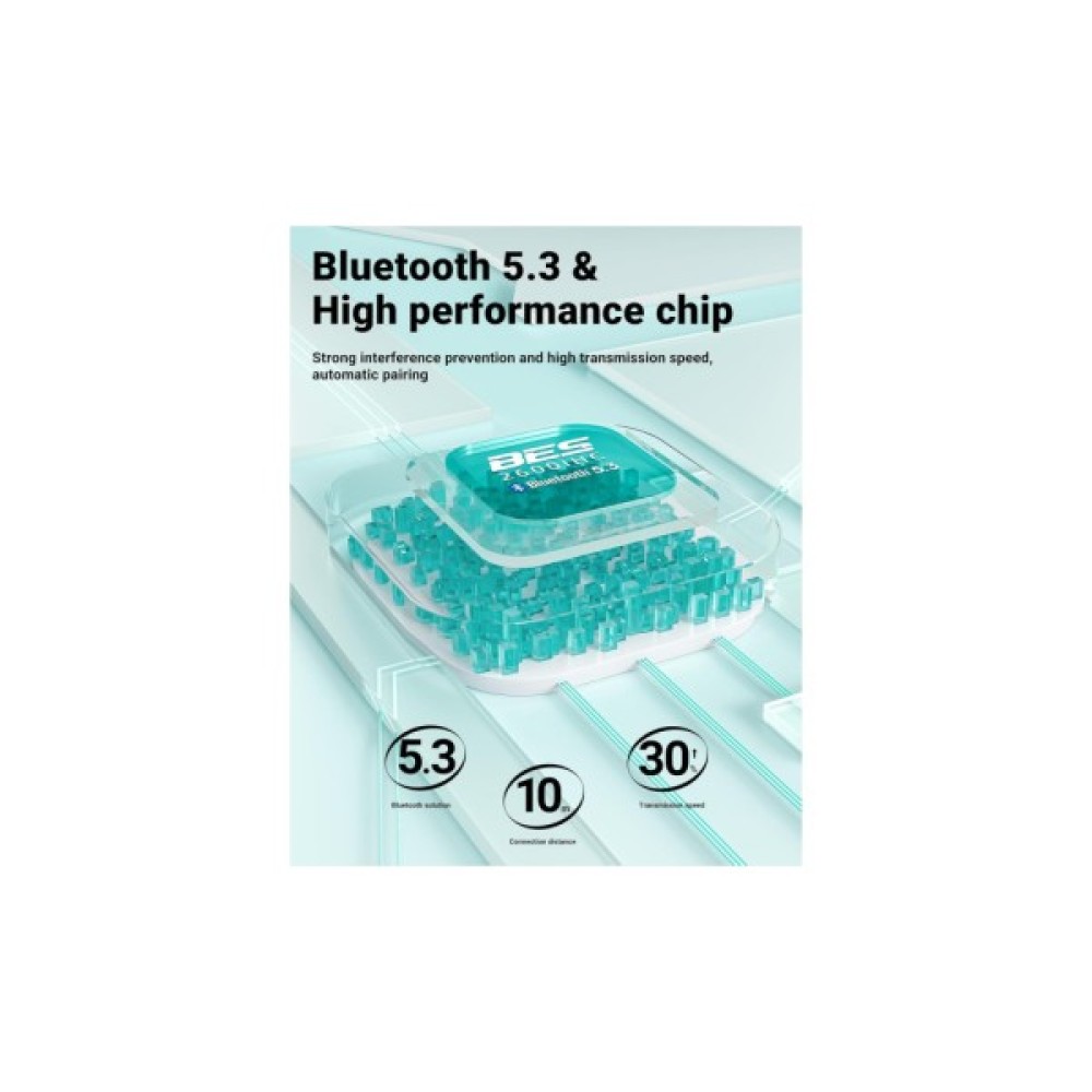Конструкція навушників вакуумна/внутрішньоканальна, що не тільки забезпечує ідеальне прилягання до вух але й підтримує їх у стабільному положенні під час активного руху. З легкістю підключайтесь до будь-якого пристрою за допомогою Bluetooth 5.3, забезпечуючи надійну і бездротову передачу сигналу без жодних затримок. Залиште свій телефон чи ноутбук у безпечному місці й насолоджуйтесь свободою руху без втрати якості звуку.