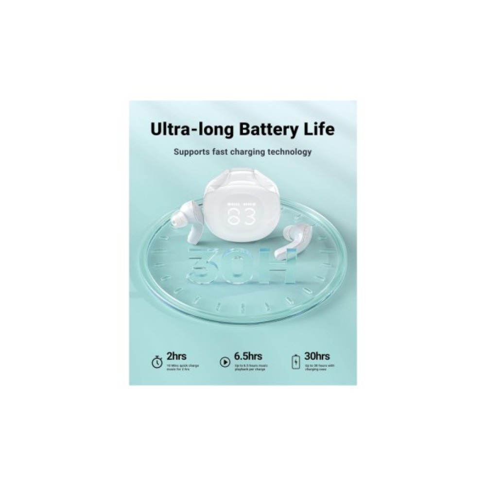 Амбушури із силікону дарують максимальний комфорт, а мала вага у 43 г робить навушники майже невагомими під час довготривалого використання. Додатковий цифровий дисплей на зарядному чохлі інформує вас про рівень заряду акумулятора, дозволяючи контролювати час використання. Acefast T9 Porcelain White — це не просто гаджет, а незамінний інструмент для тих, хто цінує якість, стиль і сучасні технології у кожній деталі. Незабутня музика та ідеальне звучання завжди з вами.