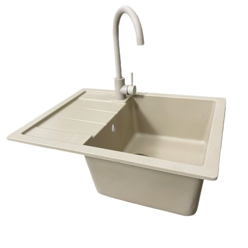 Кухонний набір Adamant Anila поєднує мийну з міцного штучного мінерального матеріалу та змішувач у сучасному дизайні. Мийка виконана у прямокутній формі з крилом та має зручну основну чашу для щоденного використання. Матеріал стійкий до високих температур, подряпин і впливу побутової хімії. Змішувач доповнює комплект, забезпечуючи комфортне регулювання води та плавну роботу. Набір створений для тих, хто цінує практичність, довговічність і приємну естетику на кухні.