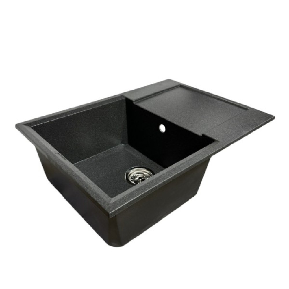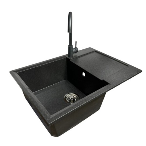 Кухонний набір Adamant Horizon Medium поєднує містку прямокутну мийку зі штучного каменю та ергономічний змішувач для комфортної роботи. Глибока чаша та зручне крило створюють достатньо простору для миття посуду та обробки продуктів. Матова поверхня зберігає охайний вигляд навіть за частого використання. Технологія Solid Surface забезпечує високу довговічність та стійкість до впливу зовнішніх факторів. Це практичний вибір для сучасної кухні.