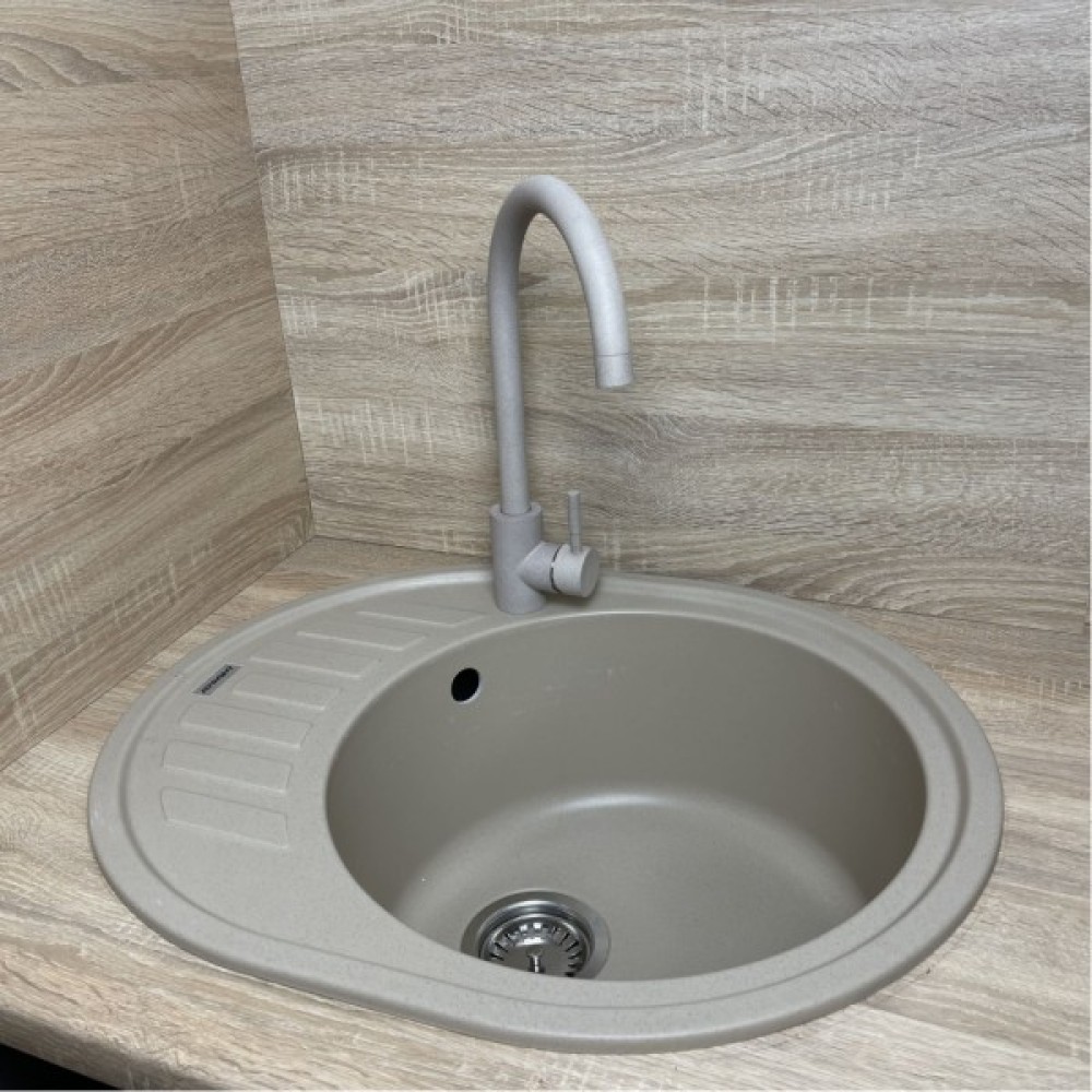 Набір Adamant Ovum поєднує овальну врізну мийку зі штучного каменю з функціональним крилом та надійним змішувачем. Завдяки технології Solid Surface поверхня стійка до впливу високих температур та щоденного навантаження. Глибока чаша забезпечує комфортне миття посуду й обробку продуктів. Структура матеріалу проста в догляді та не вбирає запахів. Це збалансоване рішення для сучасних кухонь із вимогами до довговічності та практичності.