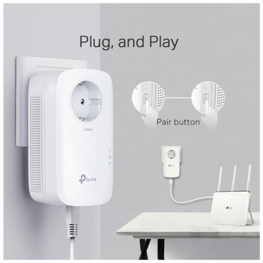 Вбудована розетка з вихідною потужністю до 16 А дасть змогу використовувати адаптер Powerline для під'єднання додаткових пристроїв або подовжувачів так, якщо б це була звичайна розетка.