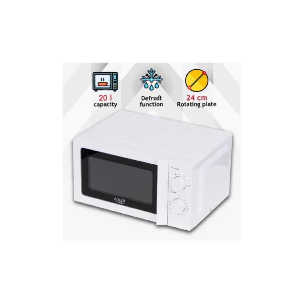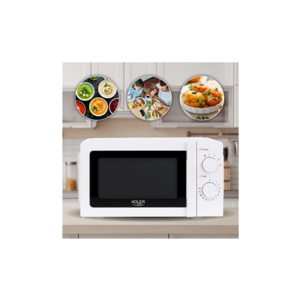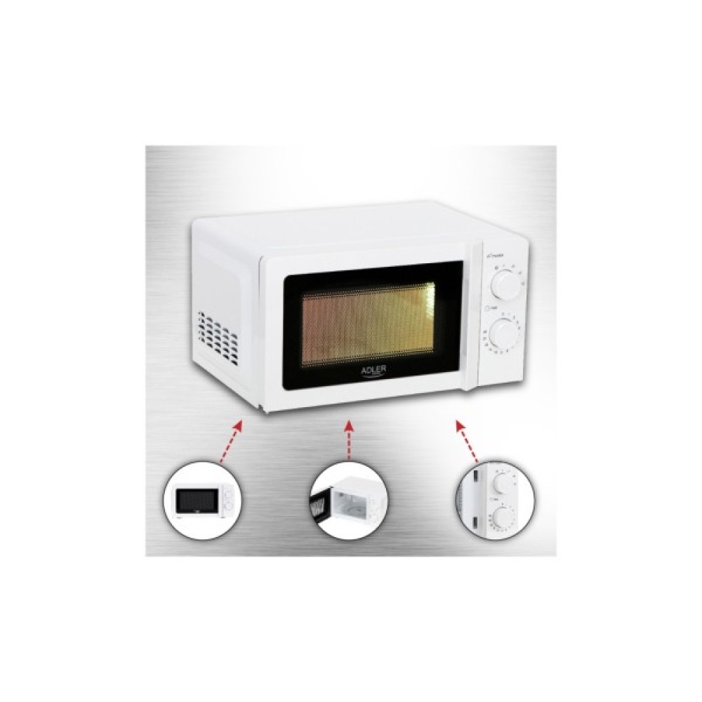 З об’ємом у 20 літрів, мікрохвильова піч Adler AD 6205 чудово підійде для сімейного використання, дозволяючи без зусиль приготувати або розігріти навіть найбільші порції. В поєднанні з потужністю НВЧ у 700 Вт, вона забезпечує швидкий і рівномірний розігрів, що робить її ідеальним вибором для приготування та розігріву їжі різної складності.