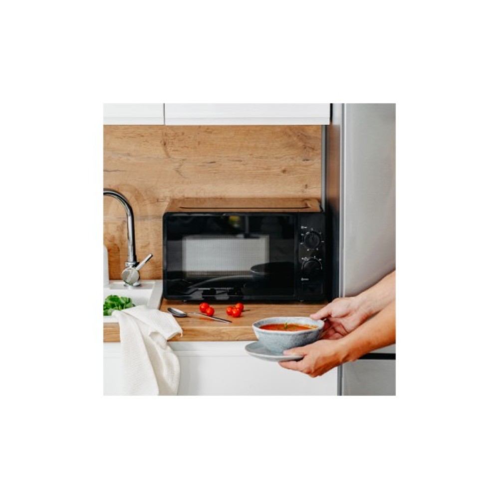 Мікрохвильова піч має об'єм 20 літрів, що дає змогу легко справлятися з приготуванням та розігрівом їжі для всієї родини або компанії друзів. Потужність у 700 Вт дозволяє виконувати ці процеси швидко та ефективно, що робить її незамінною в ритмі сучасного життя. Обираючи один із шести рівнів потужності, ви маєте змогу ідеально адаптувати роботу мікрохвильовки під потреби кожної страви, щоразу гарантуючи досконалий результат.