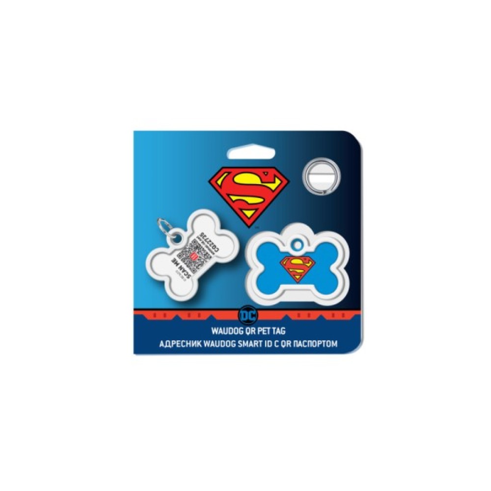 Адресник, тварин, WAUDOG, Smart, ID, з, QR, паспортом, Суперменгерой, кістка, 40х28, мм, 06401009