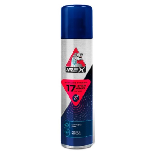 Засоби для боротьби з комахами стали незамінними. Особливо в теплу пору року, коли маленькі шкідники можуть зіпсувати відпочинок чи навіть поставити під загрозу здоров’я. Універсальний аерозоль від Irex, розроблений проти 17 видів комах, стане надійним союзником у цій боротьбі. Високоякісна формула, збагачена ефективними активними компонентами, забезпечує потужний захист і гарантує результат, який зможе оцінити кожен. З його допомогою перебування вдома або на природі буде більш комфортним, а контакт з комахами — мінімальним.