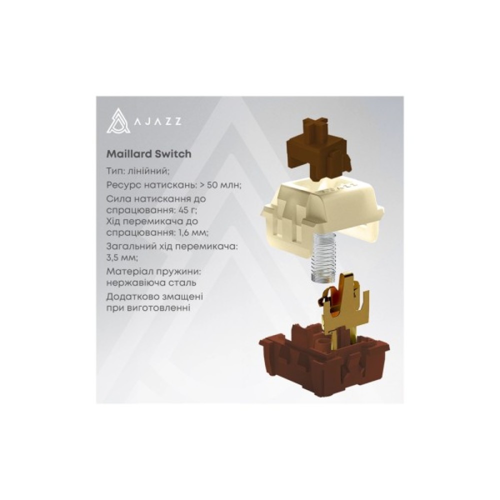 Клавіатура оснащена фірмовими Maillard Switch, які забезпечують плавний, стабільний і приємний хід клавіш з чітким контролем натискання. Hot-swap підтримка дозволяє легко замінювати перемикачі.