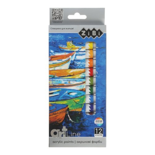 Акрилові, фарби, ZiBi, ART, Line, 2, 12, кольорів, х, 12, мл, ZB6663