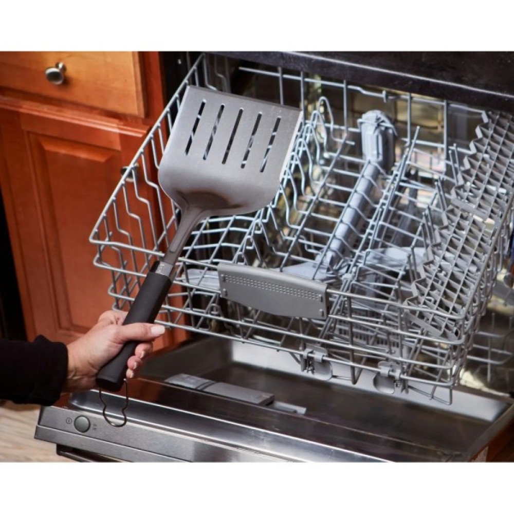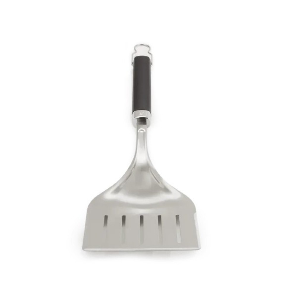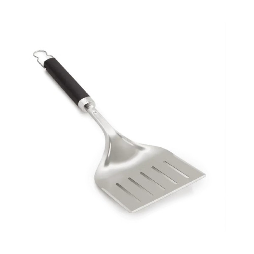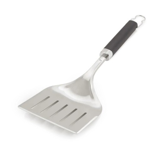 Лопатка для гриля від Weber стала ще крутішою! Відтепер завдяки великій площі, ви запросто зможете підняти великі шматки м'яса або ніжні продукти, а загострені краї з трьох сторін, дозволять робити це з максимально високою точністю. Надміцна конструкція із нержавіючої сталі та ручка з покриттям soft-touch забезпечить повний контроль в роботі, та стійкість матеріалу до корозії, а зручний крючок допоможе повісити аксесуар у зоні гриля.