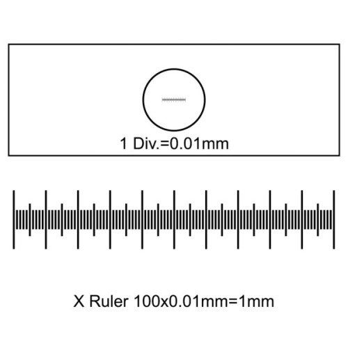 Даний мікрометр є предметним склом, на якому розміщена шкала з точним позначенням розміру. Числове значення на мікрометрі, порівнюючи з об'єктом, який спостерігається, є фактичним числовим значенням даного об'єкта.
