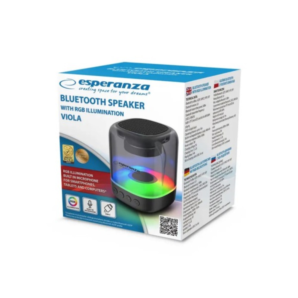 Акустична система Esperanza RGB Illuminated FM Viola Black (EP154) – це ідеальний вибір для тих, хто цінує мобільність та якість звучання у компактному корпусі. Ця портативна Bluetooth-колонка зацікавить вас своїм чітким звуком і яскравим LED підсвічуванням, яке створює неперевершену атмосферу під час прослуховування музики. Вона відмінно підходить для використання у подорожах, вдома чи в автомобілі, забезпечуючи вам задоволення від музики в будь-який час і в будь-якому місці.
