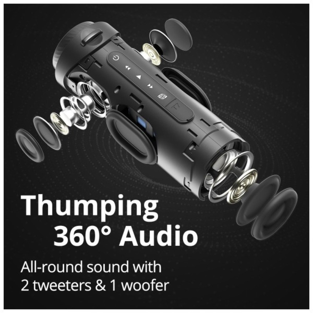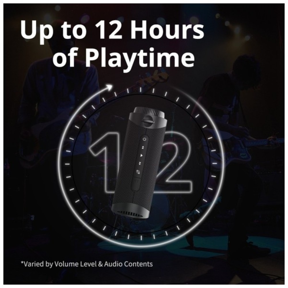 Корпус колонки виготовлений з міцного пластику та гумових елементів, що підвищує її стійкість до механічних пошкоджень та запобігає ковзанню. Крім того, інтегрований акумулятор гарантує тривалий час роботи, що цінується під час подорожей чи пікніків, коли доступ до розеток може бути обмеженим.