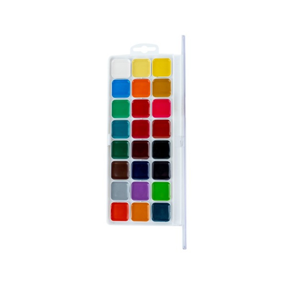 Яскрава палітра на 24 кольори надихає створювати шедеври. Пластикова упаковка на клямці – компактна та зручна у використанні. Прозора кришка дозволяє розгледіти кольори.