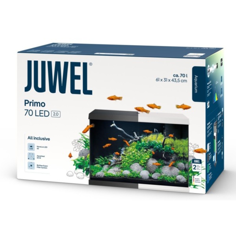 Primo 70 LED 2.0 - це повністю обладнаний набір для акваріума, який містить правильно підібране освітлення, ефективний фільтр і надійний нагрівач. Це ідеальний продукт для початку вашої пригоди з акваріумами.