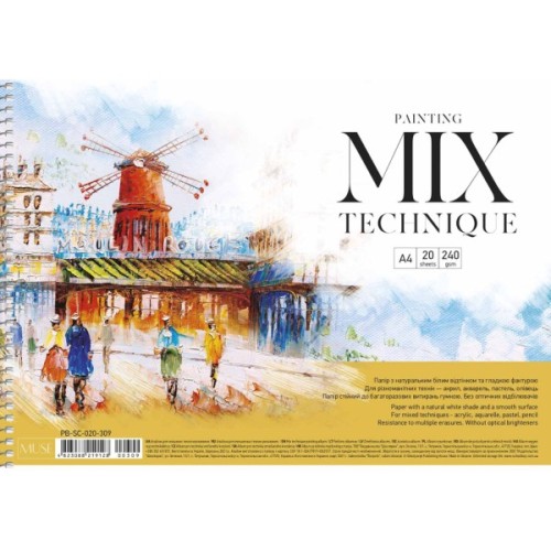 для змішаних технік, MUSE А4 20 аркушів 240г/м2