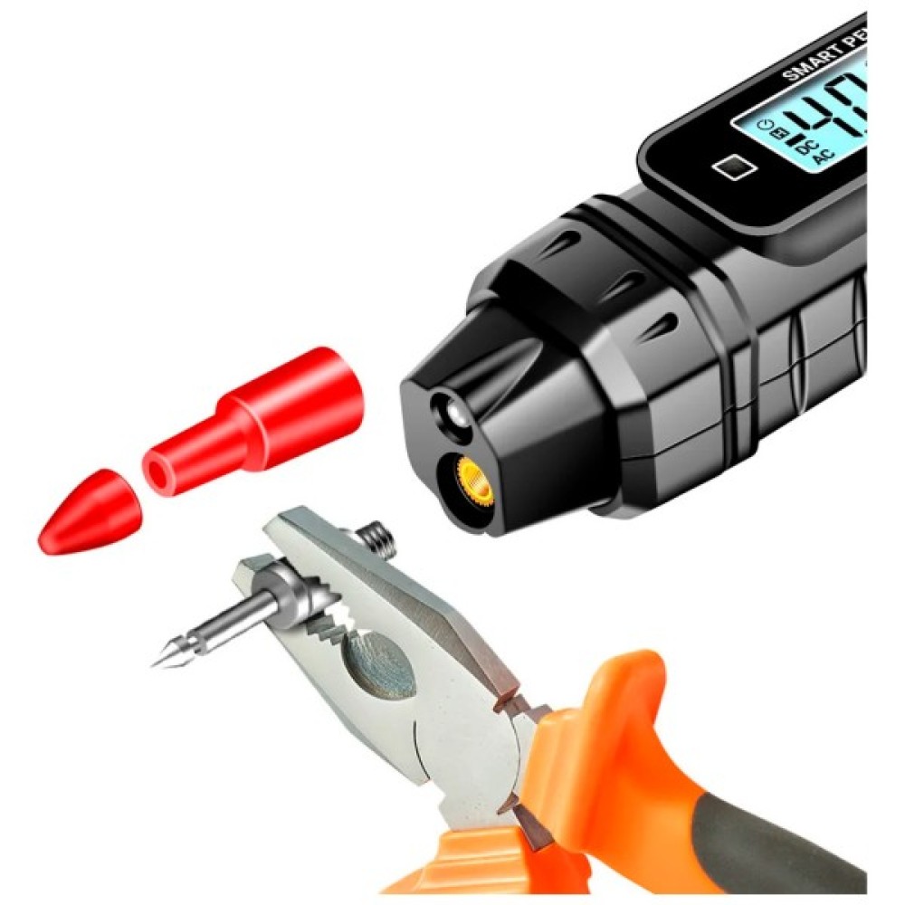 • Функція безконтактного виявлення напруги (NCV) дозволяє безпечно визначити наявність електричної напруги у проводах та пристроях.