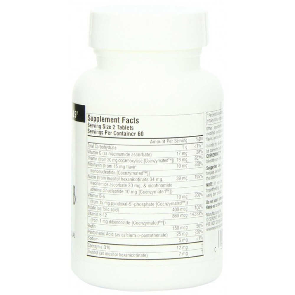 Даний комплекс від Source Naturals забезпечує всі водорозчинні вітаміни групи В в їх активній коферментной формі. Вітаміни групи В грають важливу роль в клітинному метаболізмі. Колись ця група вважалася одним вітаміном. Пізніше дослідження показали, що вони є окремими складовими, які часто співіснують в одних і тих самих продуктах. Добавки, що містять всі вісім вітамінів групи В (тіамін, рибофлавін, ніацин, піридоксин, кобаламін, біотин, фолат, пантотенова кислота), називаються комплексом вітаміну В.