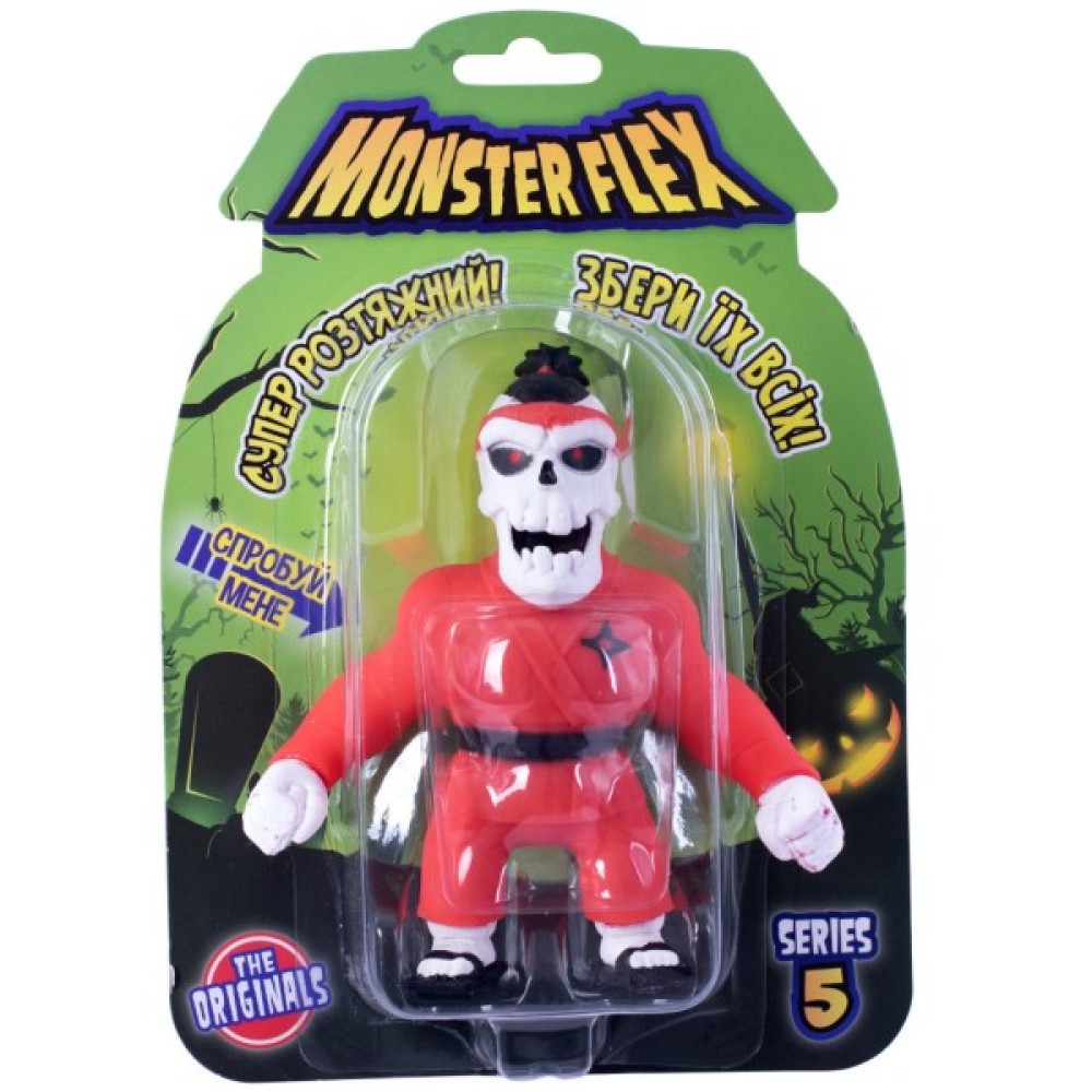 Занурся у світ монстрів разом із фігурками ТМ Monster Flex! Це забавні фігурки, які тягнуться, у вигляді найрізноманітніших жахливих монстриків, які сподобаються і хлопчикам, і дівчаткам. Їх можна скручувати та тягнути, щоб отримати іншу форму. Вони легко повертають собі колишній вигляд. Іграшка-тягучка Monster Flex Череп Каратист – це антистрес, виготовлений із екологічно чистої термопластичної гуми. Завдяки своєрідній формі, текстурі та спеціальному матеріалу фігурку можна м'яти, стискати, зв'язувати у вузол, робити різні трюки та все, що дозволить фантазія. Повеселіться гарненько з супер-іграшками Monster Flex і перевірте, як сильно ви зможете розтягнути свого монстра!
