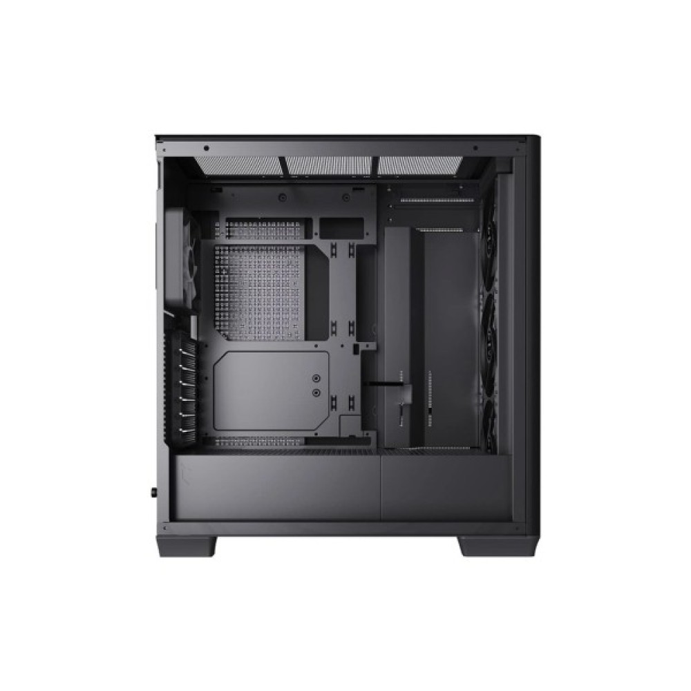Розроблений з урахуванням можливостей безкомпромісного охолодження, корпус має три вбудовані вентилятори діаметром 120 мм. Ефективну циркуляцію повітря можна покращити шляхом додавання вентиляторів на верхню чи бокову панель, що гарантує стабільну роботу системи навіть під максимальним навантаженням. Підтримка рідинного охолодження з опціями для установки радіаторів до 360 мм дозволяє зберігати оптимальну температуру для високопродуктивних компонентів, створюючи ідеальні умови для тривалих ігрових сесій або завдань з інтенсивними обчисленнями.