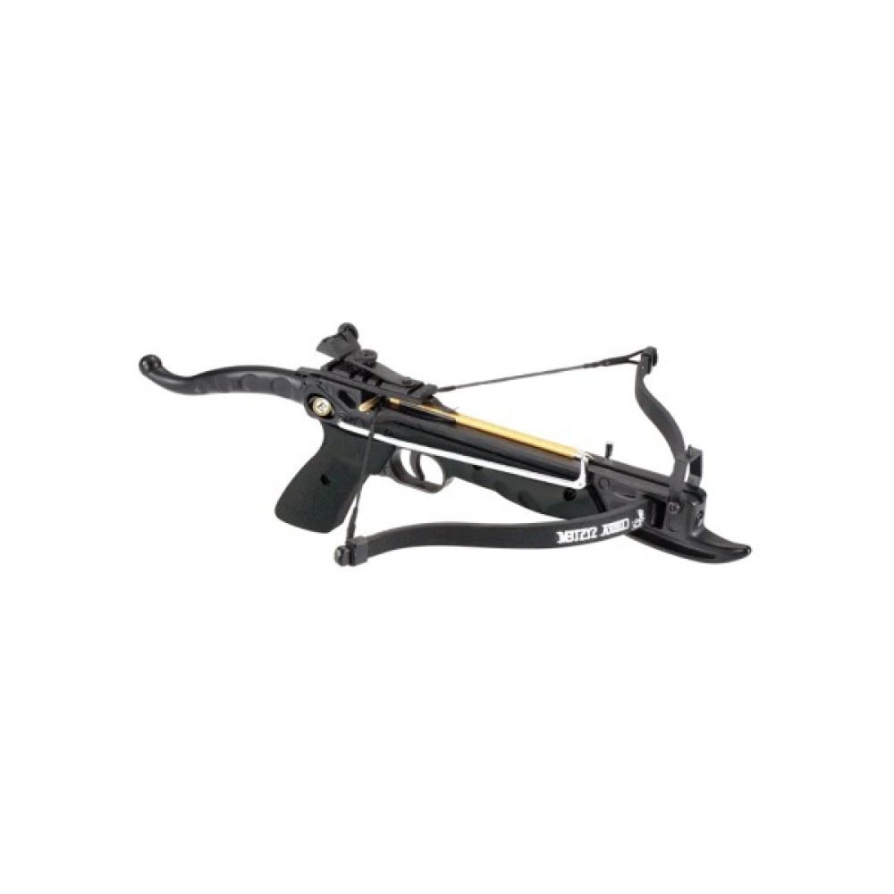 - Poe Lang Cobra ALUMINUM PISTOL XBOW CR-039BK - простий, надійний і невибагливий арбалет-пістолет, розроблений спеціально для похідних умов. Це відмінне бюджетне рішення для новачків у стрільбі або простих любителів, які зрідка вибираються постріляти по мішенях.