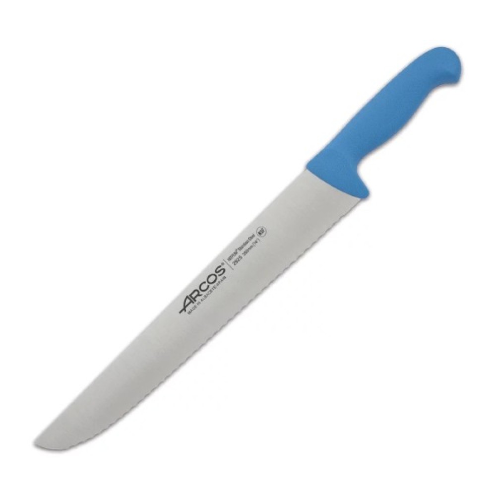 Ніж для риби Arcos серії «2900» з рукояткою синього кольору та серейторним лезом підходить для обробки та нарізання риби різних розмірів. За рахунок серейторного краю леза, ніж легко нарізає навіть найжорсткіше м’ясо риби, а також призначений для волокнистих матеріалів.