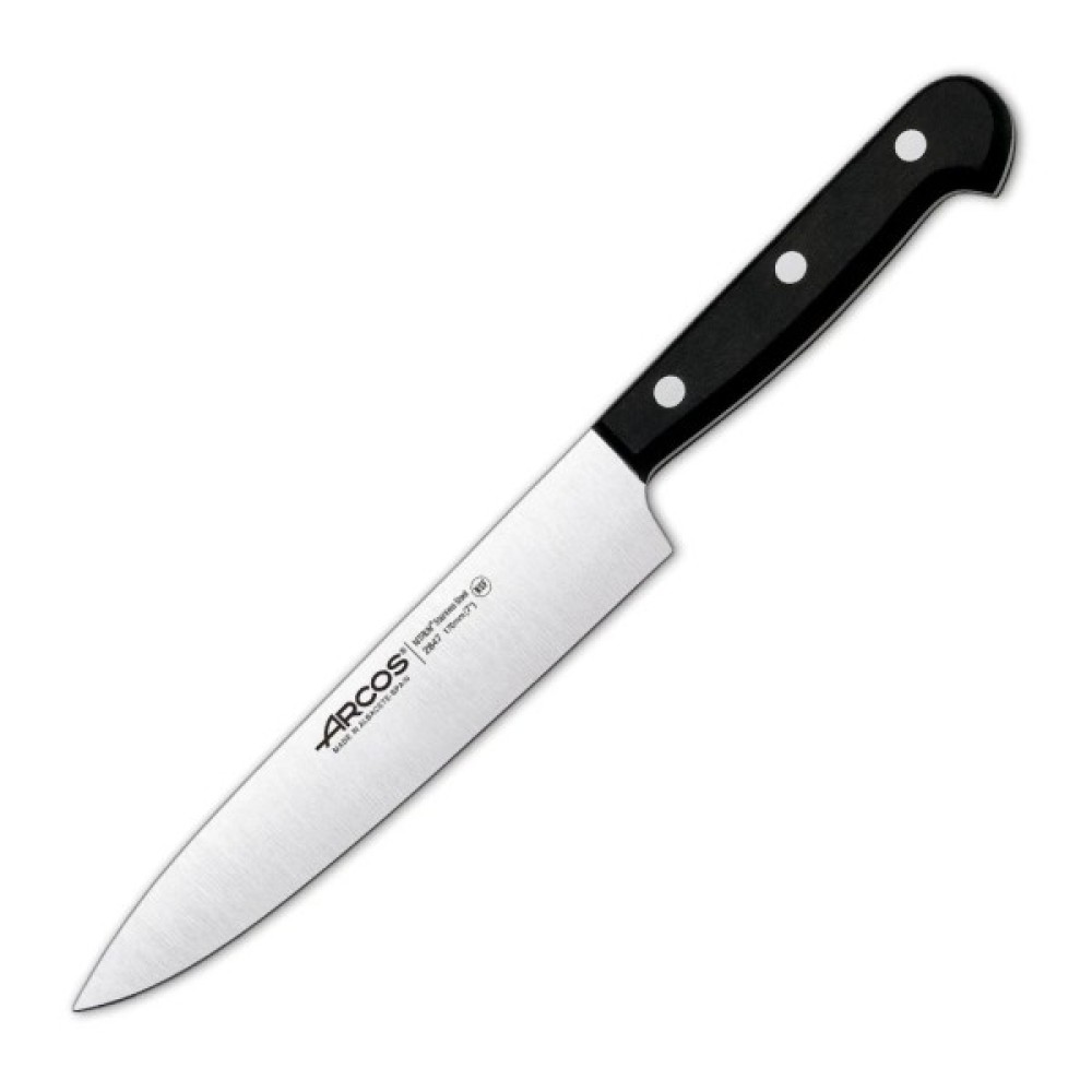 Ніж кухарський Arcos серії «Universal» призначений для щоденного використання на кухнях ресторанів та харчових виробництвах. Багатофункціональні шеф-ножі підходять для шаткування овочів та фруктів, обробки, нарізання м’яса та риби та інших робіт.
