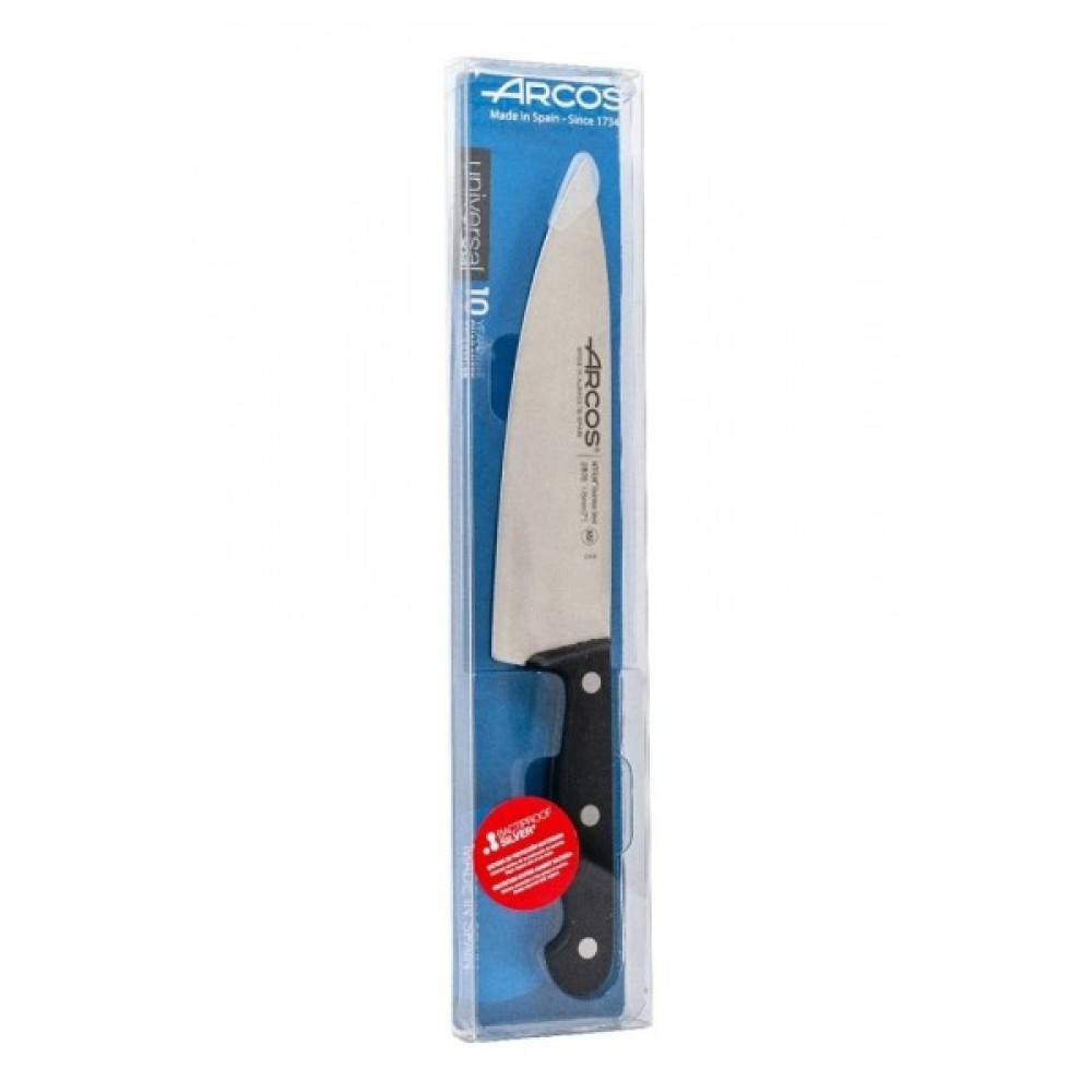 Ніж кухарський Arcos серії «Universal» призначений для щоденного використання на кухнях ресторанів та харчових виробництвах. Багатофункціональні шеф-ножі підходять для шаткування овочів та фруктів, обробки, нарізання м’яса та риби та інших робіт.