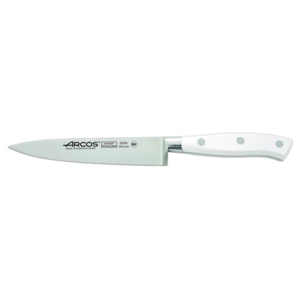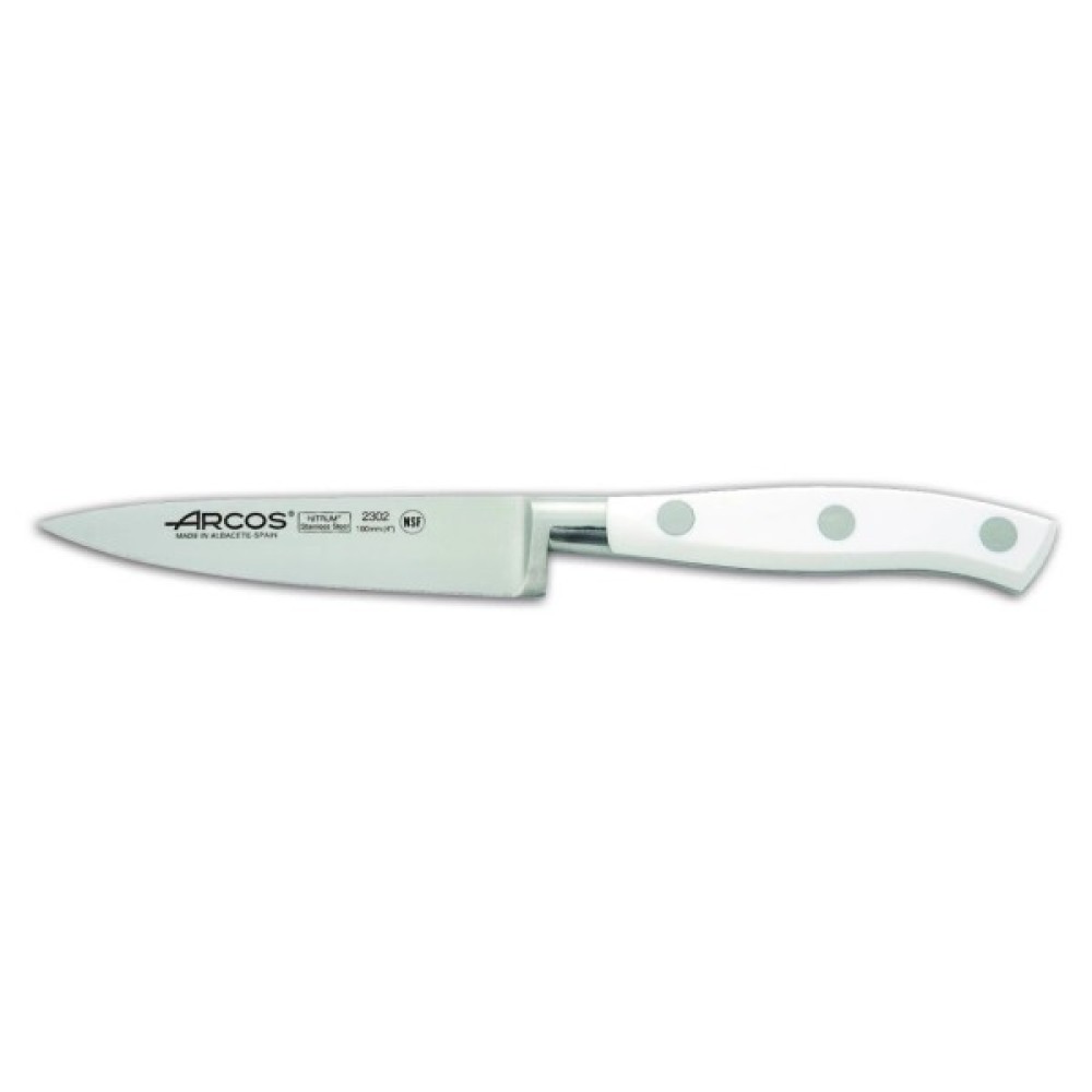 Лезо ножів для кухні виготовили з ексклюзивної нержавіючої сталі NITRUM, що мають надвисоку ріжучу здатність, підвищену твердість та корозостійкість. У результаті лезо ножів аркос довго не затуплюється, не ржавіє, тому виріб має довгий термін служби, забезпечуючи економічну ефективність інвентарю. Захистом для пальців під час нарізання служить особлива конструкція п’ятки, що розміщена на кінці леза та робить використання ножа безпечним і надійним.