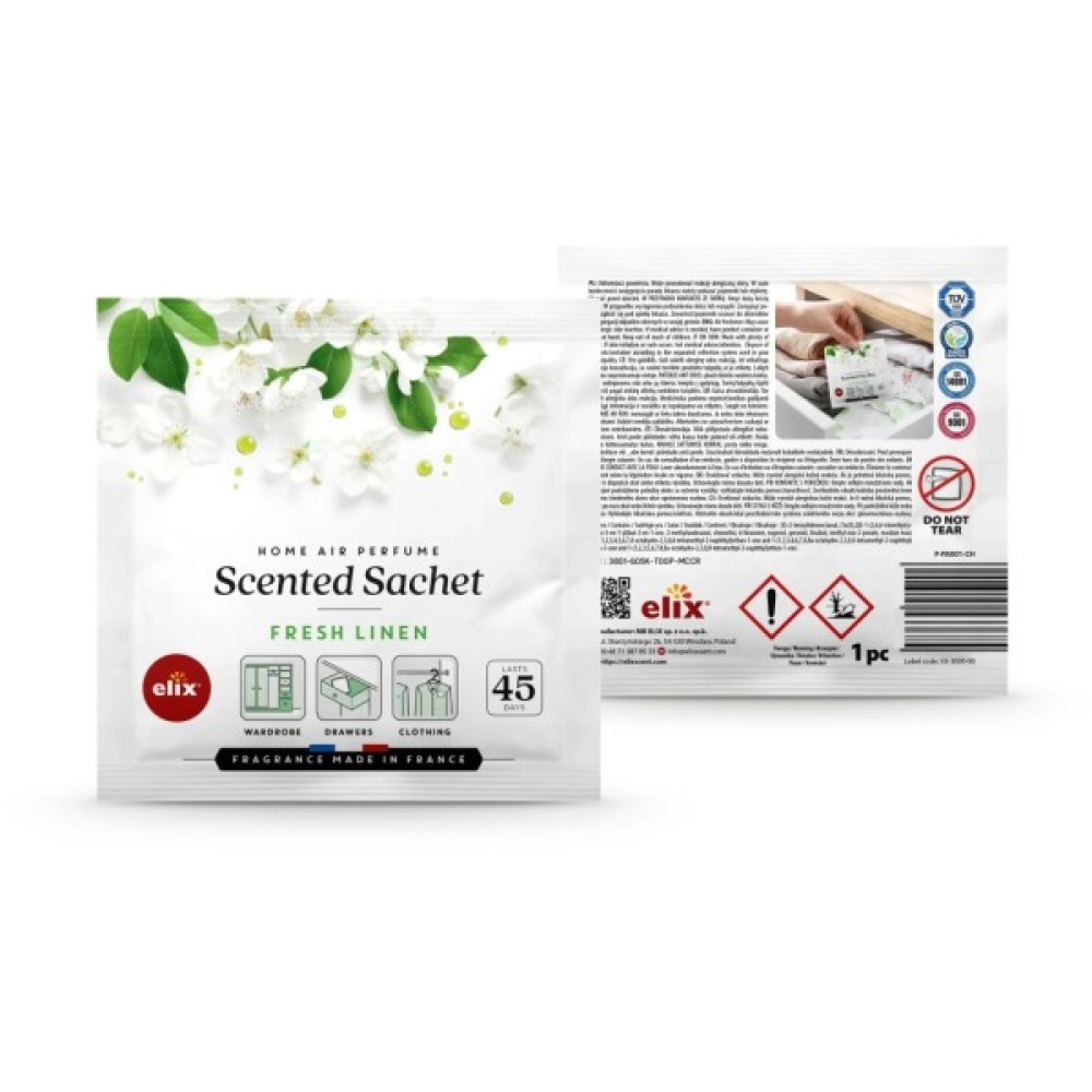 Аромасаше Scented Sachet Fresh Linen - ароматичне саше, що подарує вашим речам і простору аромат свіжої випраної білизни. Ідеальне рішення для шаф, ящиків, валіз, коробок із взуттям чи автомобіля. Лише дістаньте його з упаковки - і насолоджуйтеся приємною свіжістю щодня. Ароматична композиція в верхніх нотах включає квітку апельсина, бузок та свіжі акорди. До нот серця входять кремова троянда, гвоздика й іланг-іланг, а базові ноти включають мускус, кедр, пачулі та бавовну. Композиція поєднує ніжні квіткові ноти, деревну глибину та чистий аромат бавовни, створюючи відчуття свіжості й затишку.