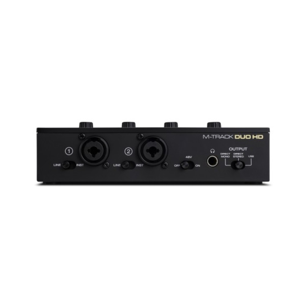 Інтерфейс із двома входами та двома виходами забезпечує велику гнучкість для різних налаштувань запису. Він також включає роз'єм для навушників, фантомне живлення +48 В для конденсаторних мікрофонів і підсилювачі Crystal™, які забезпечують прозоре, детальне посилення до 55дБ. Професійні АЦП пристрої гарантують, що кожен запис буде проводитись з високою точністю. Завдяки професійній роздільній здатності звуку 24-біт/192кГц M-Track Duo HD захоплює ваш звук з абсолютною ясністю та точністю, а моніторинг із нульовою затримкою дозволяє вам чути те, що ви відстежуєте в реальному часі.