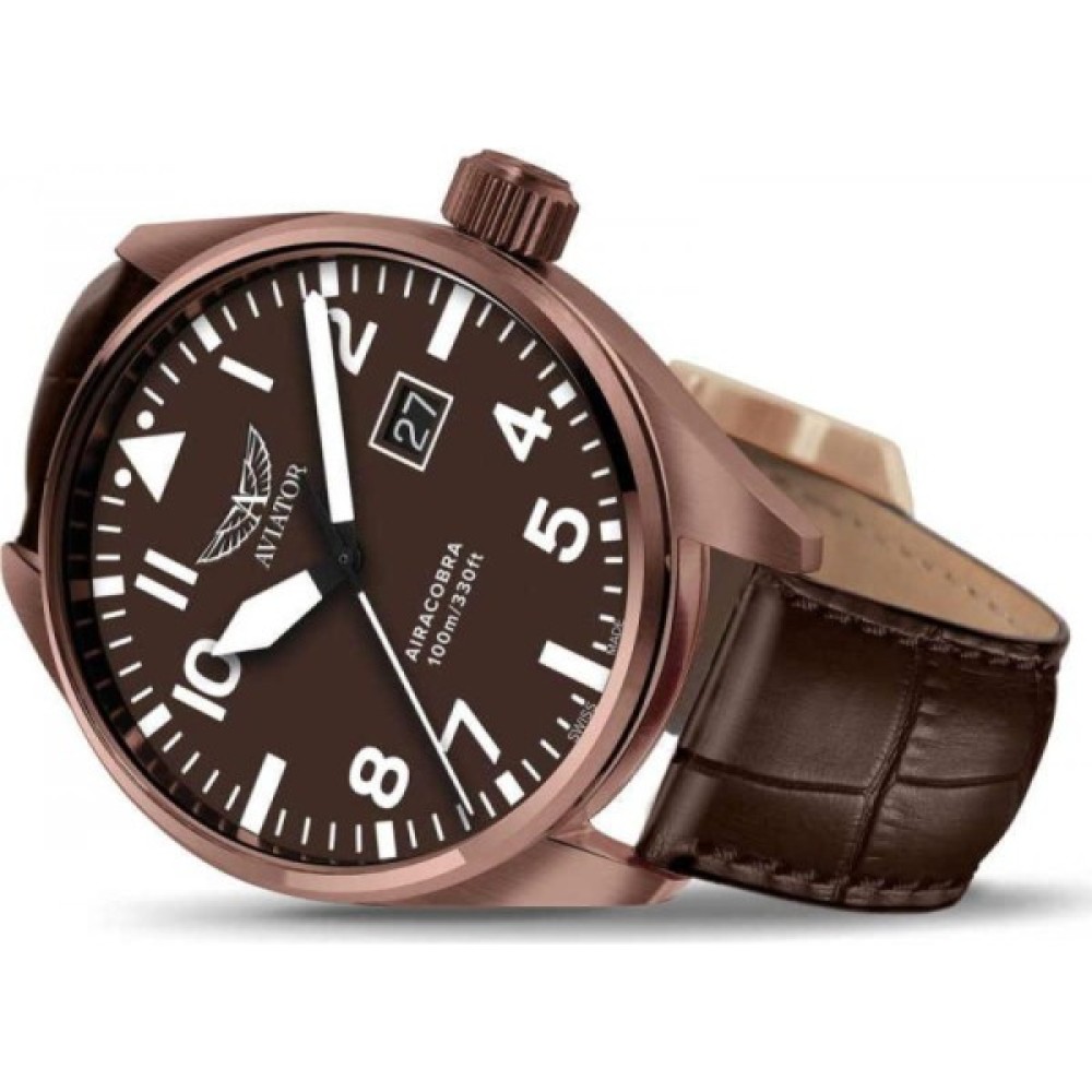 Під час Другої світової війни забезпечення авіаційної підтримки літаками Airacobra було запорукою успіху сухопутних операцій. Годинник AVIATOR Airacobra P42 не поступається своєму авіаційному прототипу за надійністю і витриманий у такому ж ретро стилі, як і легендарний військовий літак. При створенні AVIATOR Airacobra P42 використовуються найкращі та найпрестижніші матеріали, що забезпечує годинникам військову точність і класичний вигляд. Своєю високою контрастністю стрілки та годинникові мітки нагадують оформлення кабіни пілота. У годинника добре читається циферблат, велике вікно індикації дати і кришка корпусу з клепаними елементами. Все це надає годинникам Airacobra P42 виняткову надійність і в той же час дозволяє увічнити в них пам'ять про віхи в історії авіації.
