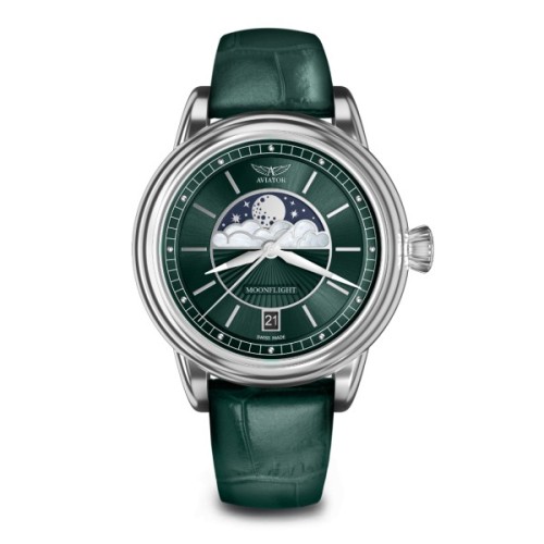 У колекції годинника AVIATOR MoonFlight класичні елементи стилю ар-деко ефектно поєднуються з фазами Місяця. моделі, що ввійшли до неї, присвячені кращому літаку тих часів. З ними ви будете оточені зірками у вишуканій атмосфері від-кутюр.