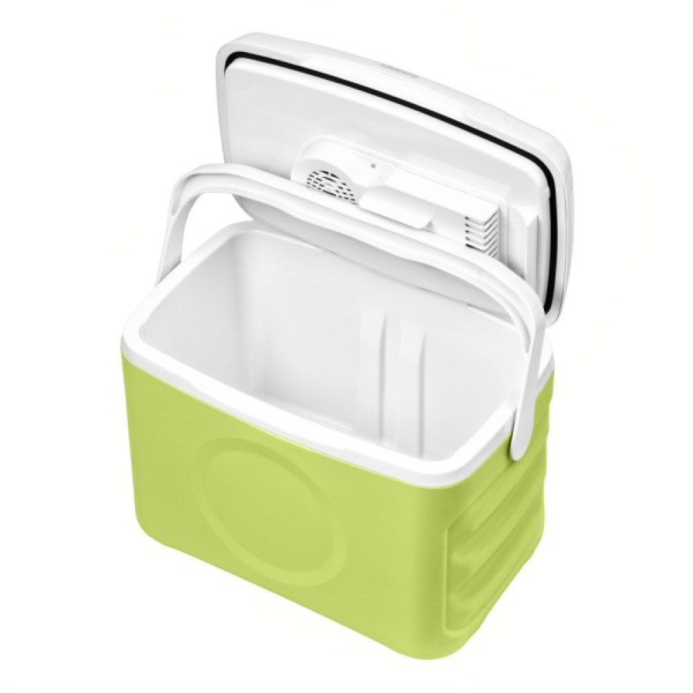 Рівень шуму не перевищує 26 дБ: холодильник працює майже беззвучно, не заважаючи відпочинку під час тривалих поїздок. Велике ергономічне руків’я полегшує транспортування та фіксує кришку в закритому або напіввідкритому положенні.