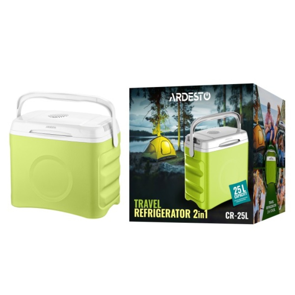ARDESTO CR-25L – універсальний дорожній холодильник 2 в 1, що поєднує функції охолодження і підігріву. Місткість 25 л робить його зручним для подорожей і сімейного відпочинку.