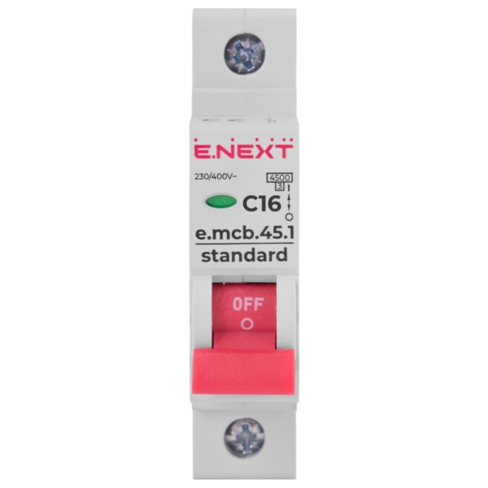 Модульний автоматичний вимикач e.mcb.stand.45.1.C16, 1р, 16А, C, 4,5 кА призначені для захисту електричних мереж та обладнання низької напруги від струмів перевантаження та короткого замикання, а також нечастих оперативних комутації електричних мереж.