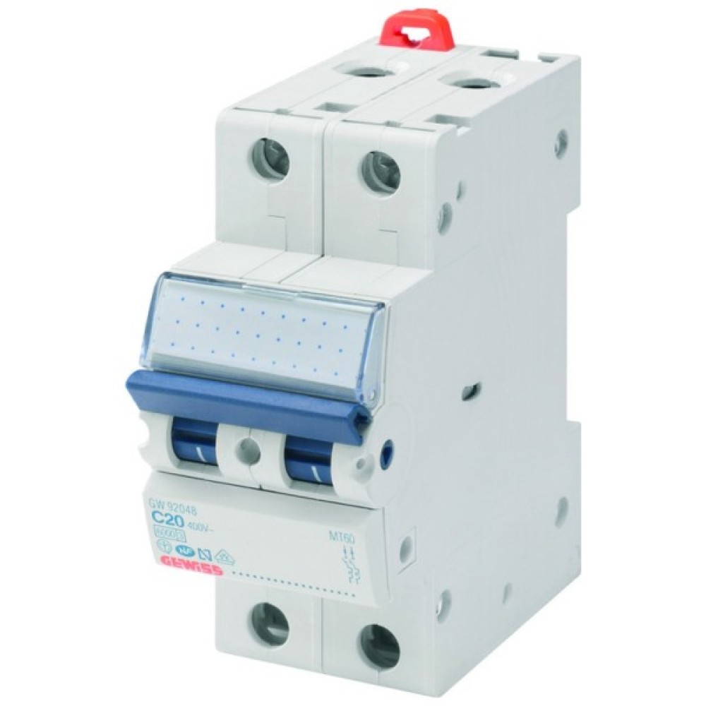Gewiss GW92046 – двополюсний автоматичний вимикач, який ефективно захищає ваші електричні мережі від перевантажень і коротких замикань. З характеристикою спрацьовування "C" та здатністю вимкнення 6 кА, цей вимикач підходить для забезпечення безпеки різних електричних систем.