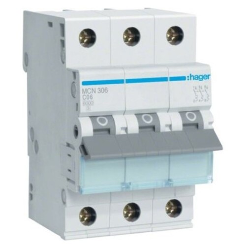 Автоматичний вимикач Hager 3P 6kA C-6A 3M (MCN306)