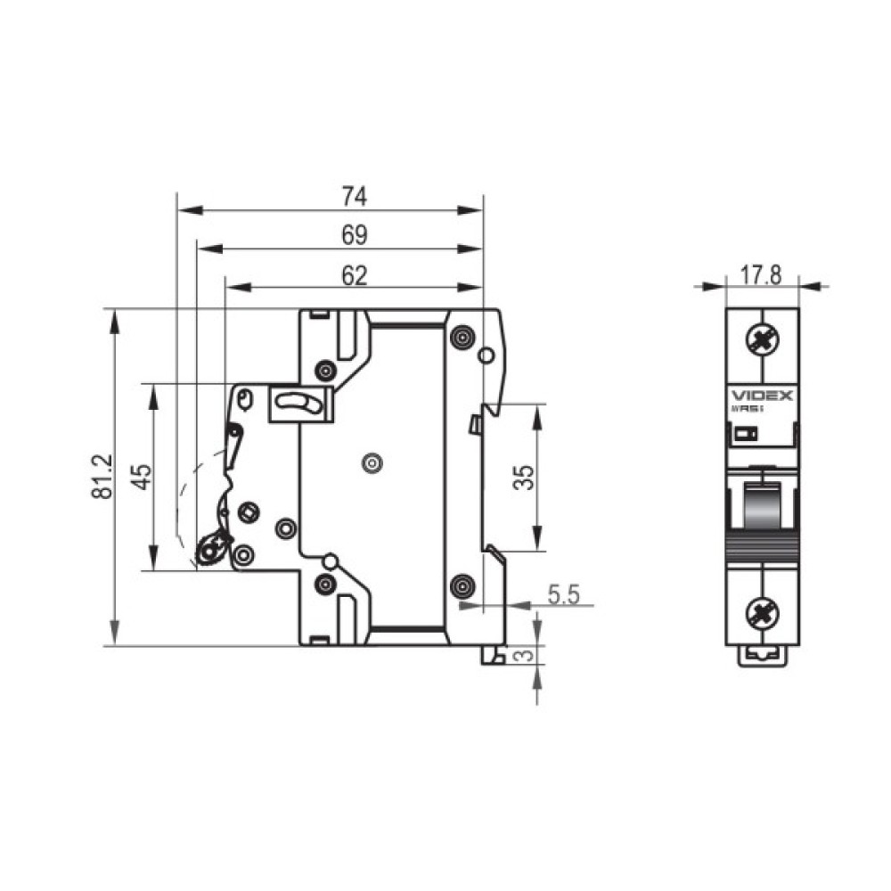 Автоматичний вимикач Videx RS6 RESIST 1п 6А 6кА С (VF-RS6-AV1C06)