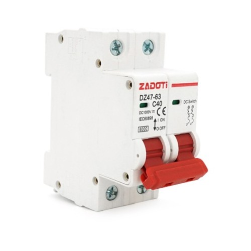 Автоматичний вимикач постійного струму ZADOTI DZ47-63C40 2P – це надійне та компактне рішення для захисту електричних ланцюгів постійного струму від перевантажень та коротких замикань. Ця модель спеціально розроблена для роботи в умовах високої постійної напруги, що робить її незамінним компонентом у сучасних енергосистемах.