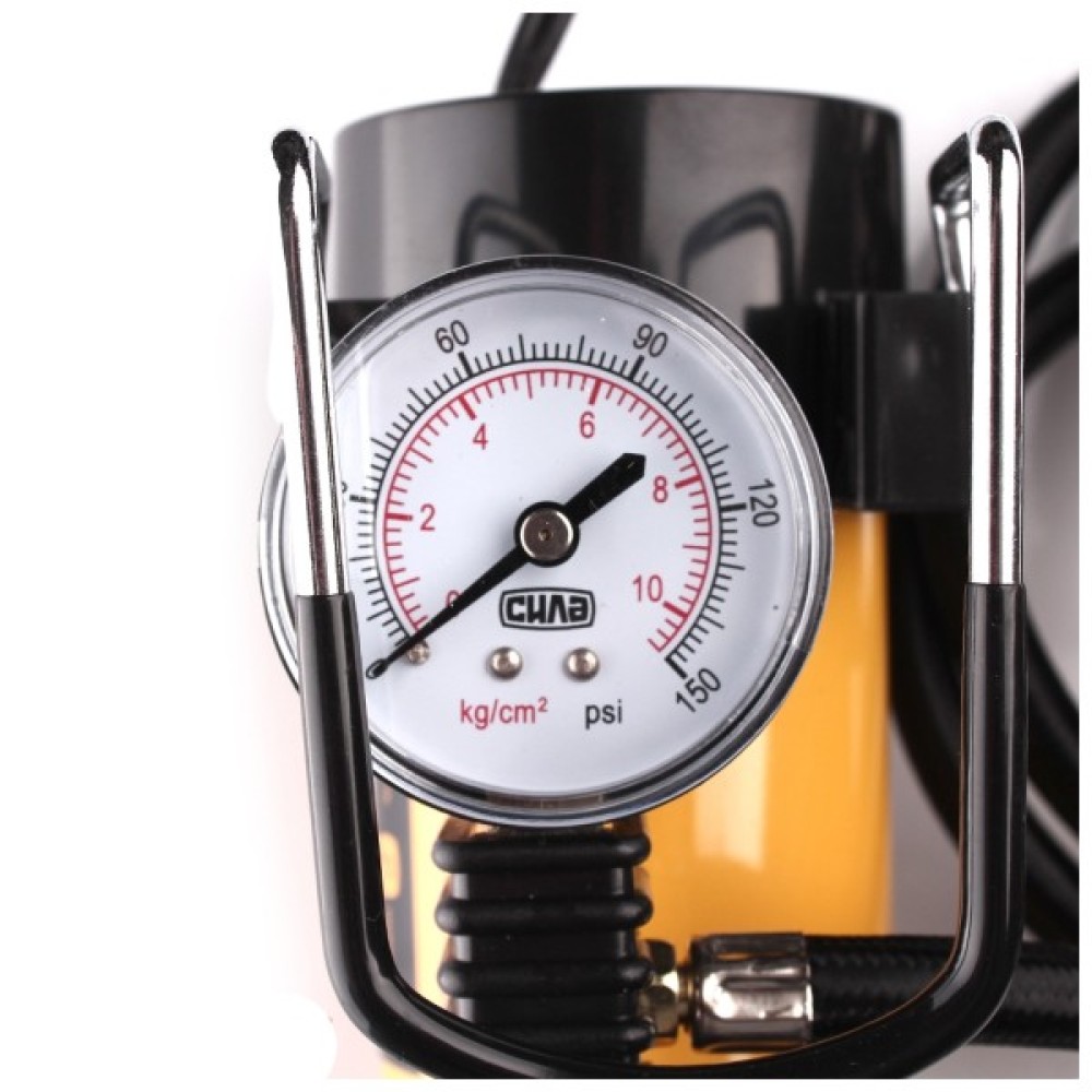 Представлений пристрій є універсальним і підходить для роботи з широким переліком об'єктів. Максимальний рівень тиску становить 7 атмосфер, а цикл безперервної роботи не перевищує 20 хвилин. Контролювати рівень тиску в об'єкті, який накачується, можна за допомогою манометра, розміщеного на пластиковому корпусі пристрою.