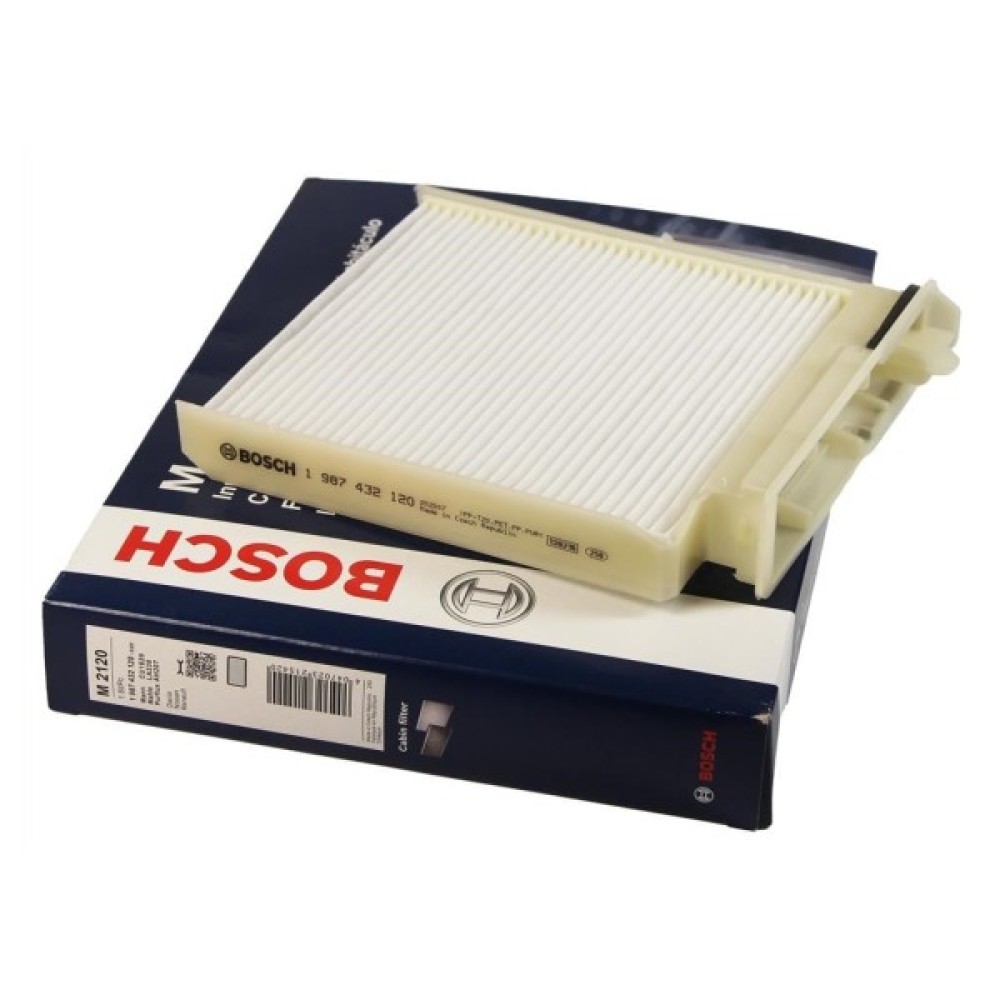 Салонний фільтр Bosch ефективно видаляє пил, пилок, дрібні частинки та інші забруднення, а деякі моделі мають активоване вугілля чи антибактеріальні шари для кращого поглинання неприємних запахів, шкідливих газів і алергенів, що підвищує комфорт і безпеку водія та пасажирів.