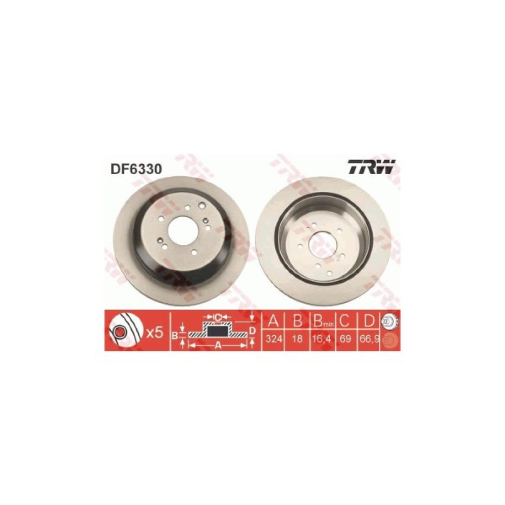 Гальмівний диск TRW DF6330 має оптимальні гальмівні характеристики, що дозволить відразу після заміни старого зношеного диска, підвищити ефективність гальмування при різному діапазоні швидкостей. Гальмівні диски DF6330 розроблено відповідно до всіх вимог автовиробників і відповідають оригінальним автозапчастинами. Диск виконаний з високоякісних матеріалів, з високою місткістю вуглецю, забезпечуючи високі термічні властивості диска, малий рівень шуму та вібрації, а також стійкість до деформацій. Висока міцність та зносостійкість дисків, забезпечить тривалий термін експлуатації.