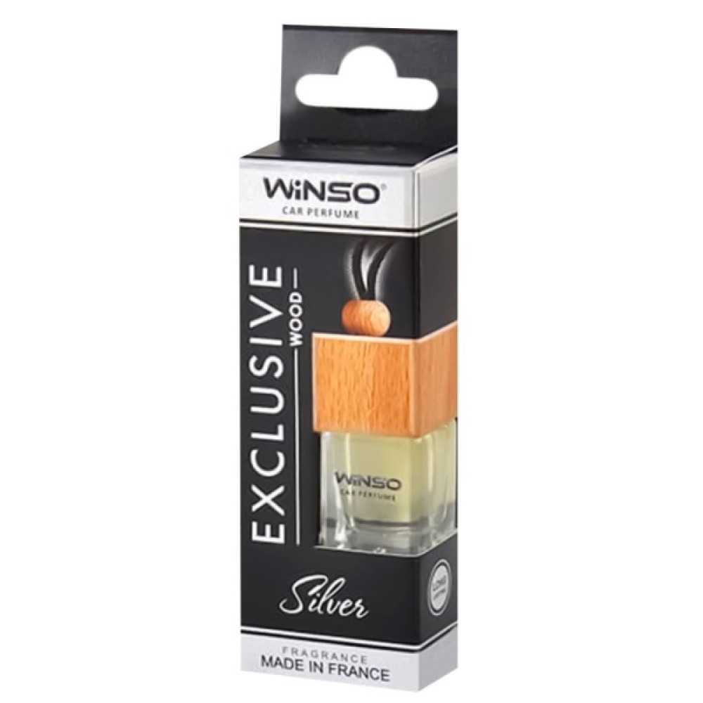 Підвісний автомобільний ароматизатор, в формі невеликого скляного флакона з дерев'яною кришкою. Завдяки міцному шнурку і компактним розмірам ароматизатор можна підвісити в будь-яке зручне для водія місце, наприклад, на дзеркало заднього виду - освіжувач повітря Winso Exclusive Wood Silver поширює приємний і ненав'язливий аромат по всьому салону автомобіля, сприяючи високому ступеню комфорту і розслабленню навіть в найтриваліших і важких поїздках. Ароматична композиція виробляється з високоякісної гіпоалергенної сировини, яка є повністю безпечнию для здоров'я. Об'єм флакона становить 6 мл, що забезпечує дуже тривалий термін служби ароматизатора Winso Exclusive Wood Silver до 3 місяців. У разі, коли дія ароматизатора не потрібна, достатьно встановити назад герметизуючу пробку в горлечко і закрити кришку.