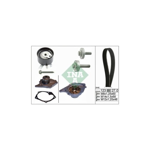 Комплект ременя ГРМ з водяним насосом INA 530 0197 30 дозволить замінити зношений ремінь ГРМ, забезпечуючи більш ефективну передачу обертання між розподілвалом і колінчастим валом, а також більш стабільну роботу газорозподільного механізму автомобіля. Всі елементи виконані з високоякісних матеріалів, забезпечуючи тривалий термін експлуатації деталі. Ремінь ГРМ має кількість зубців 123 шт. Ширина дорівнює 27 мм.