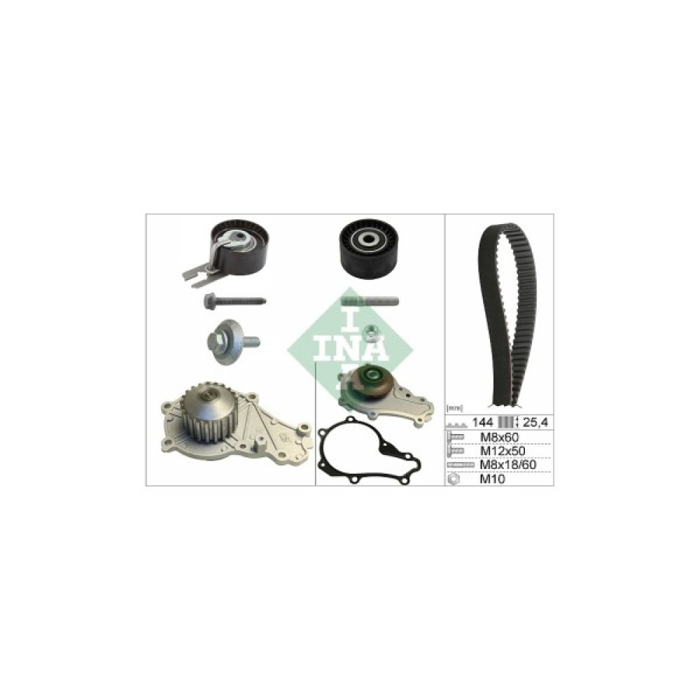 Комплект ременя ГРМ з водяним насосом INA 530 0239 30 дозволить замінити зношений ремінь ГРМ, забезпечуючи більш ефективну передачу обертання між розподілвалом і колінчастим валом, а також більш стабільну роботу газорозподільного механізму автомобіля. Всі елементи виконані з високоякісних матеріалів, забезпечуючи тривалий термін експлуатації деталі. Ремінь ГРМ має кількість зубців 144 шт. Ширина дорівнює 25.4 мм.