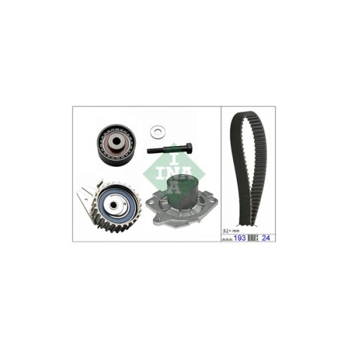 Комплект ременя ГРМ з водяним насосом INA 530 0623 30 дозволить замінити зношений ремінь ГРМ, забезпечуючи більш ефективну передачу обертання між розподілвалом і колінчастим валом, а також більш стабільну роботу газорозподільного механізму автомобіля. Всі елементи виконані з високоякісних матеріалів, забезпечуючи тривалий термін експлуатації деталі. Ремінь ГРМ має кількість зубців 193 шт. Ширина дорівнює 24 мм.