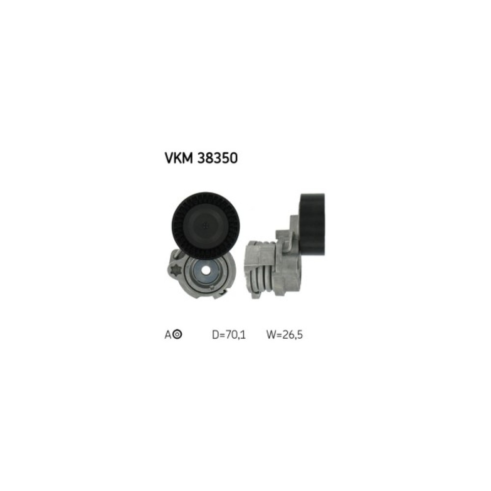 Натяжний ролик ременя поліклинового (приводного) SKF VKM 38350 дозволить зробити заміну зношеної/зламаної деталі, поліпшити ступінь натягу ременя, а також стабільність роботи приводу ГРМ та двигуна автомобіля. Всі деталі ролика виконані з матеріалів, високої якості, що дозволить забезпечити тривалий термін експлуатації деталі. Зовнішній діаметр становить 70 мм. Деталь має висоту 26.5 мм.